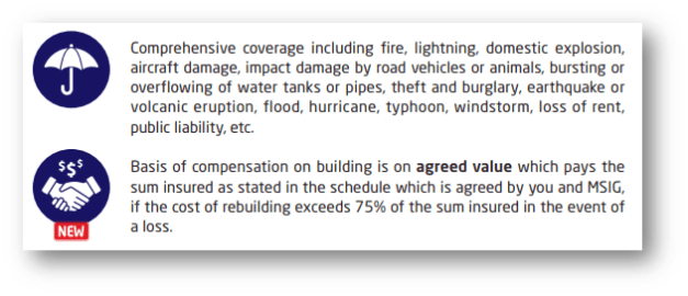 Introducing MSIG Home SafeGuard Insurance which enables your building to be fully protected on agreed value basis.